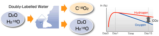 O TEE (Total Energy Expenditure) de seres humanos ou animais pode ser medido pela administração de DLW a indivíduos experimentais e após a perda diferencial de Deutério e isótopos de Oxygen-18 do corpo.